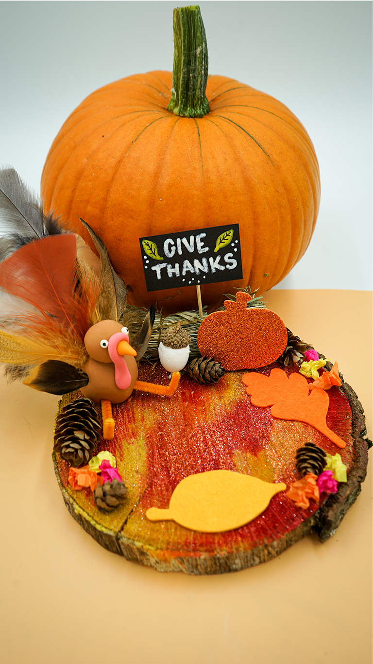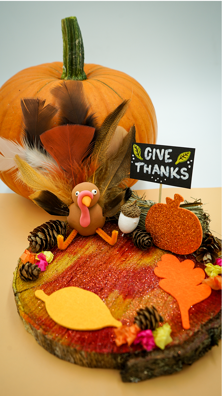 What: Spend an hour creating an adorable Thanksgiving Turkey centerpiece for your table with modeling clay, feathers, googly eyes & more!